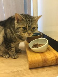 温ちゃんのお水を飲むモコちゃん。僕のお水、、ご飯も食べないで、、と訴える温ちゃん。温にぃさん、ふぁいと。。静かに応援する青ちゃん。3匹の関係性があるんです(o^^o)